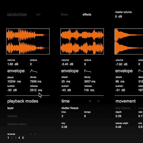 • 8 randomizable effects — transform playback, timing and tone